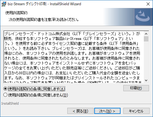 biz-Stream ダイレクト印刷クライアントモジュールのインストール画面が表示されます。