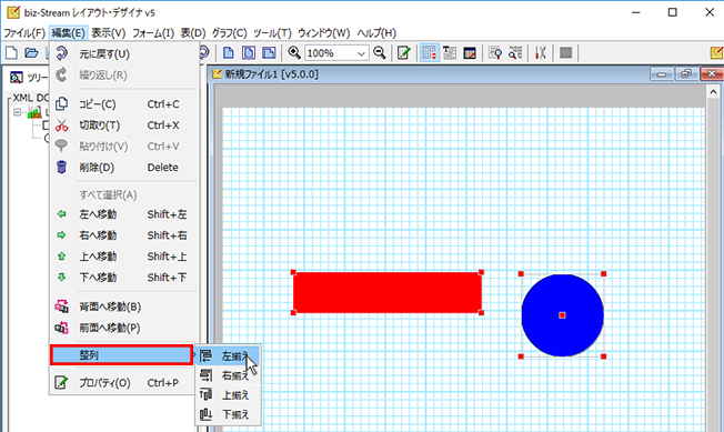 - メニューから選択します。 [編集]-[整列]から [左揃え]、[右揃え]、[上揃え]、[下揃え]を選択します。